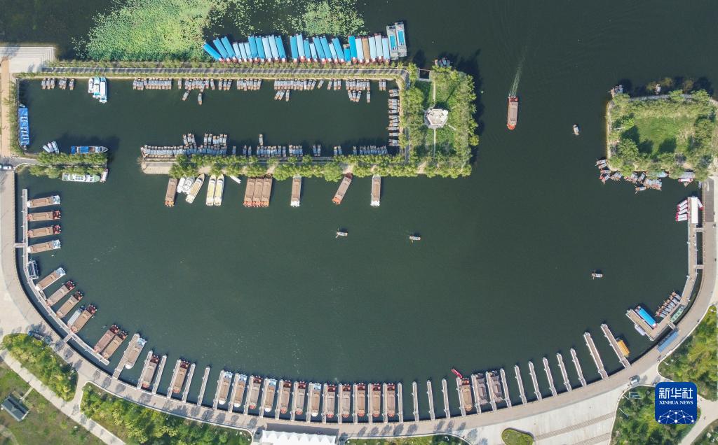 這是7月19日拍攝的白洋淀旅游碼頭(無人機照片)。