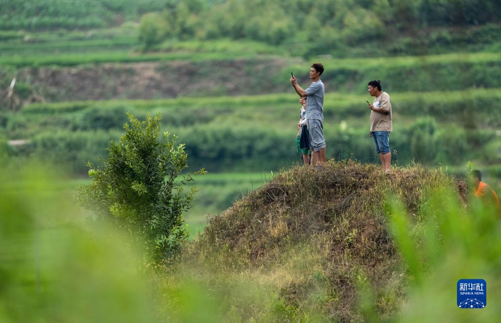 7月19日,人們在云南省普洱市江城縣的一處農田旁觀看亞洲象。