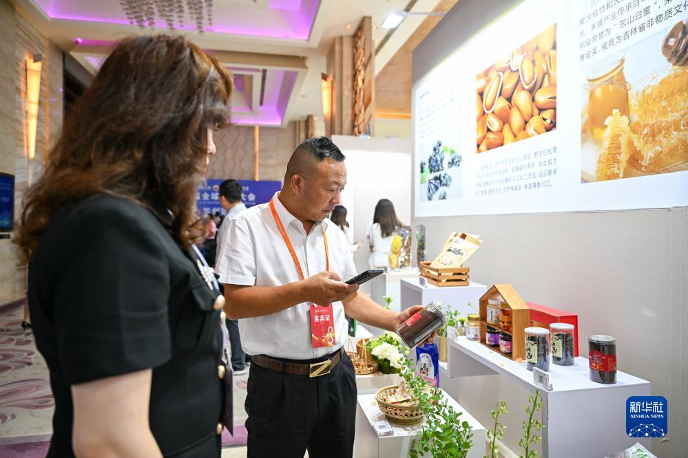 7月20日,參會嘉賓在第八屆全球吉商大會上參觀吉林特色商品。