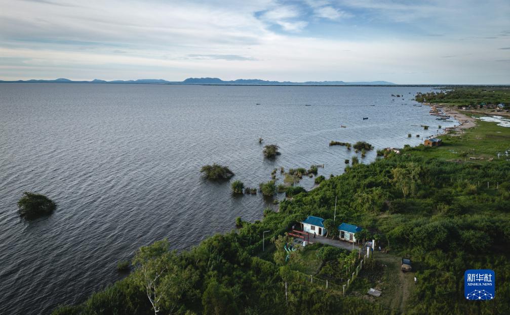 這是6月14日在坦桑尼亞姆萬扎省拉馬迪拍攝的供水項目取水泵站(無人機照片)。