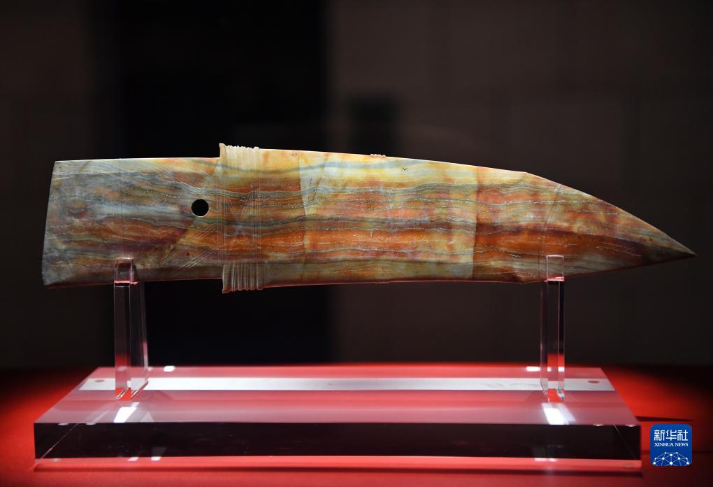 圖為金沙遺址博物館內展出的玉戈(6月29日攝)。