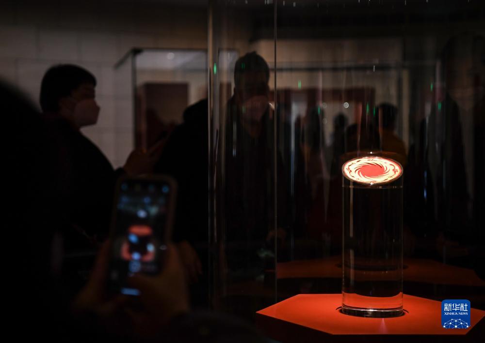 觀眾在位于四川成都的金沙遺址博物館參觀太陽神鳥金飾(1月24日攝)。
