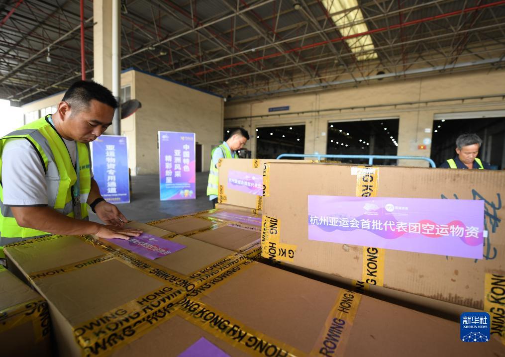 當日,中國香港代表團首批參賽制服和競賽物資分別從杭州蕭山國際機場和寧波舟山港通關,這標志著杭州亞運會首批代表團物資通過??諆陕愤\抵入境。