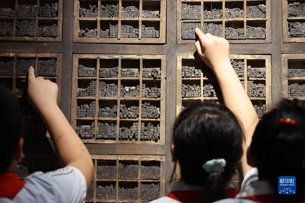 7月20日,在河北省滄州市吳橋縣河北線裝書博物館,吳橋縣新華小學學生學習了解鉛字印刷工藝。