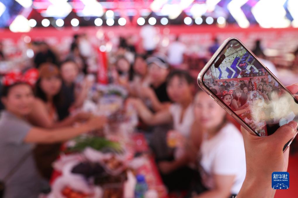 7月20日,顧客在哈爾濱國際啤酒節現場拍照留念。
