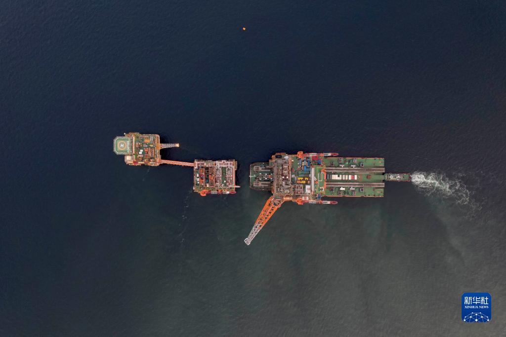7月19日拍攝的渤中19-6氣田中心平臺(無人機照片)。