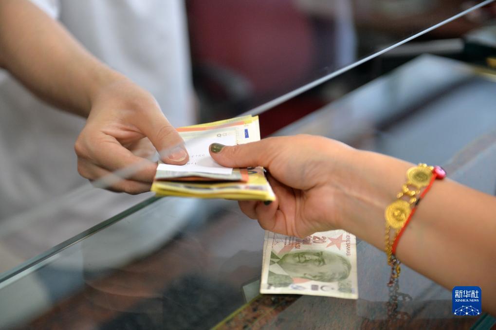 7月20日,一名顧客在土耳其安卡拉一個貨幣兌換點換錢。