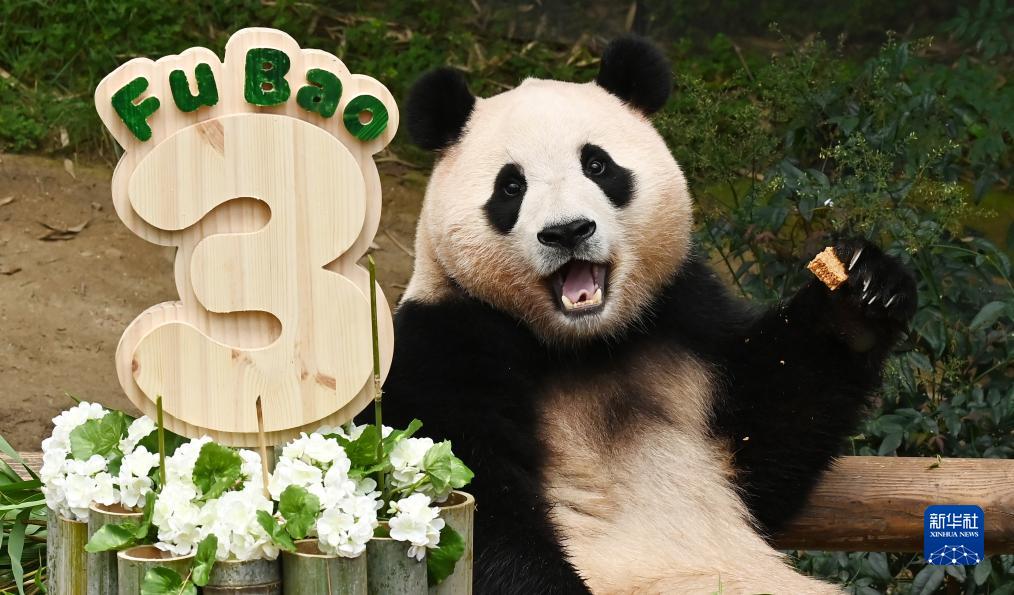 當日,在韓國出生的大熊貓“福寶”迎來3歲生日,園區制作了由竹子和胡蘿卜組成的“蛋糕”為其慶生。