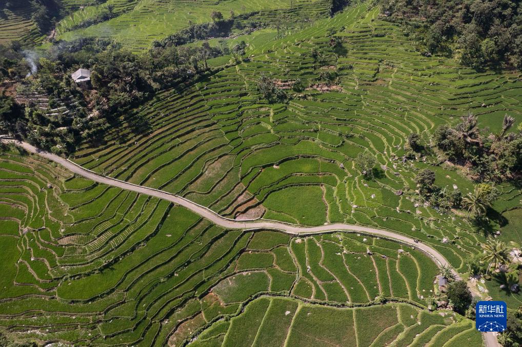 這是7月20日在印度尼西亞西爪哇省茂物地區的鄉間拍攝的稻田(無人機照片)。當前正值稻米收獲季。