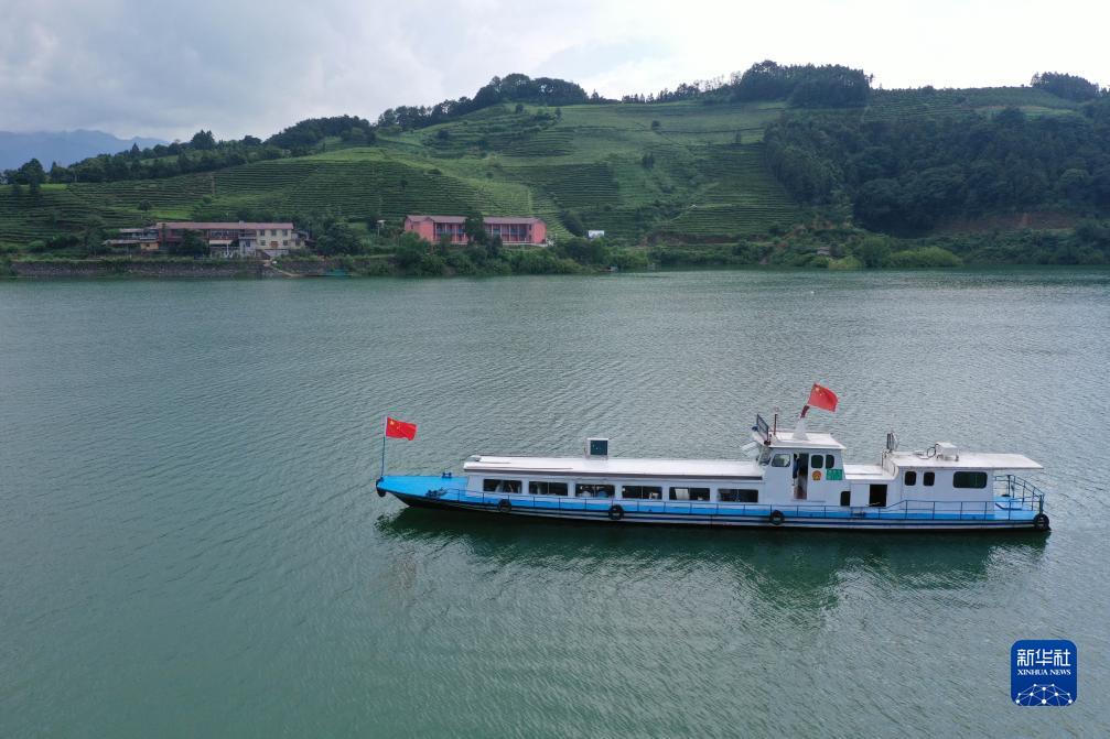 這是7月19日在湖南省安化縣拍攝的行駛在資江上的“水上法庭”(無人機照片)。