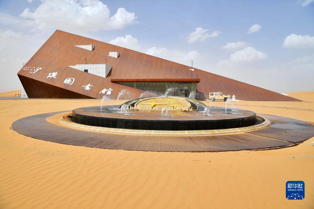 7月20日在寧夏中衛市騰格里沙漠大漠星河度假區拍攝的沙漠圖書館外景。