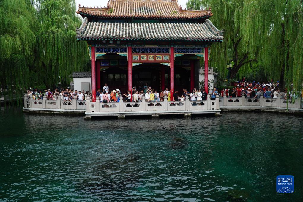 進入夏季以來,位于山東省濟南市的趵突泉吸引了大量暑期旅游的游客前來觀賞。