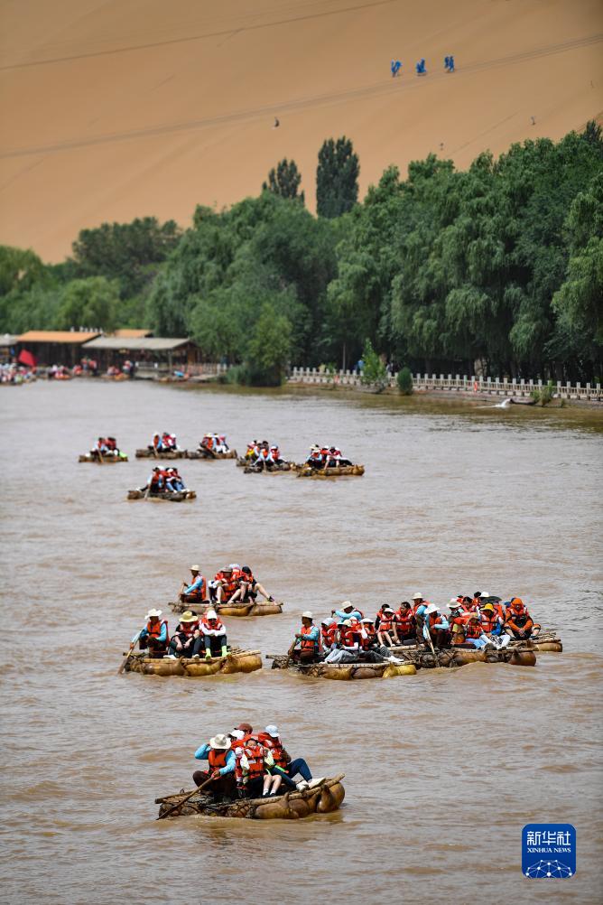 盛夏時節,地處黃河之畔與騰格里沙漠邊緣的寧夏中衛市沙坡頭景區迎來大批游客,人們在這里體驗羊皮筏子漂流、沙漠沖浪、滑沙、沙漠觀星等項目。據了解,進入暑期,寧夏中衛市沙坡頭景區客流量大幅增長,日客流量最高超過1萬人次。