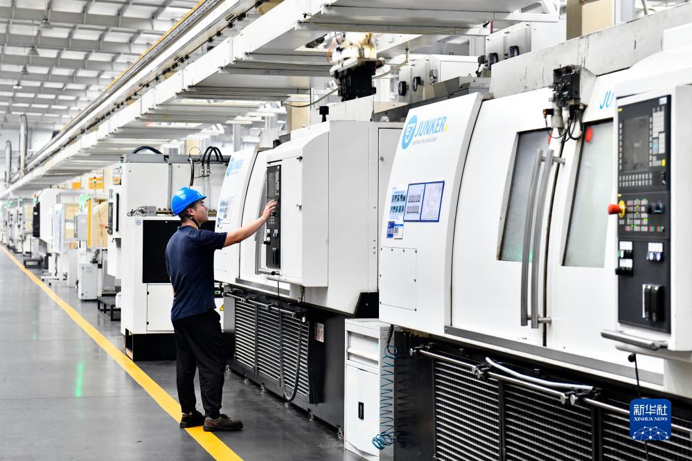 7月21日,在位于威海市文登區的天潤工業技術股份有限公司,工人在曲軸自動化生產線值守。