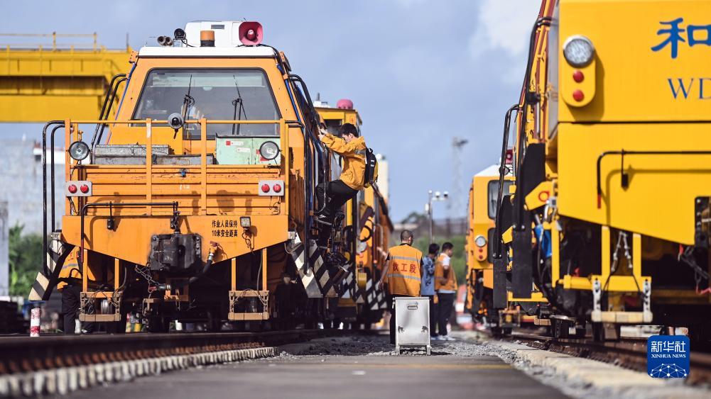 7月21日,國鐵南寧局沿海鐵路公司欽州工務段工人在進行維修工作。