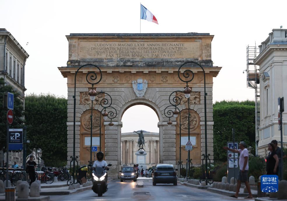 這是法國蒙彼利埃的凱旋門(7月17日攝)。