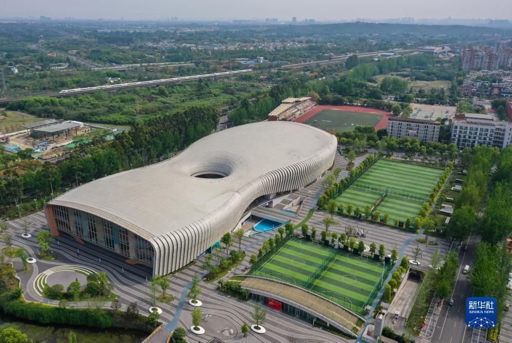 這是成都市新都區的香城體育中心(4月17日攝,無人機照片),這里將成為成都大運會水球項目的比賽場地。