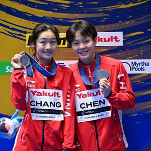 當日,在日本福岡舉行的2023年世界游泳錦標賽跳水女子單人三米板決賽中,中國選手陳藝文、昌雅妮分別以359.50分和341.50分的成績包攬冠亞軍。