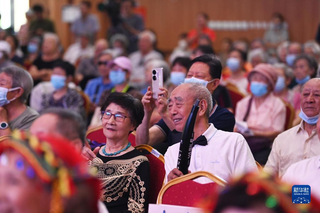 河北廊坊三河市燕達金色年華健康養護中心入住老人在觀看文藝匯演(7月20日攝)。