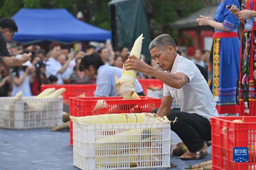 當日,廣西柳州市柳城縣舉辦“筍王”爭霸賽,全縣眾多種植大戶參賽,評委按筍的重量、大小以及參賽選手剝筍的速度和質量等進行綜合評定。比賽旨在促進農戶交流,推動竹筍產業高質量發展。