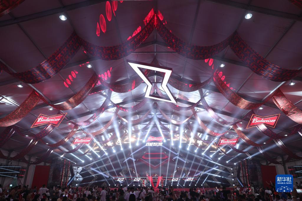 7月20日,人們在哈爾濱國際啤酒節現場觀看演出。