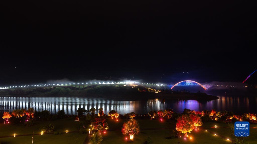 這是在重慶市巫山縣拍攝的長江巫峽口一帶夜景(7月6日攝)。