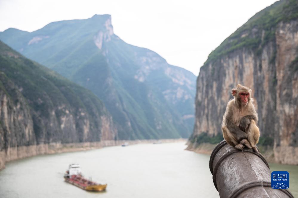 這是在重慶市奉節縣瞿塘峽拍攝的猴子(7月1日攝)。