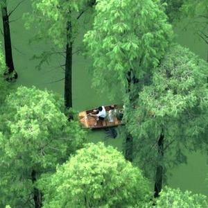 當日是中伏,在江蘇省揚州市江都區淥洋湖濕地公園內“水上森林”,游客在水杉林中穿梭游覽,享受夏日清涼。