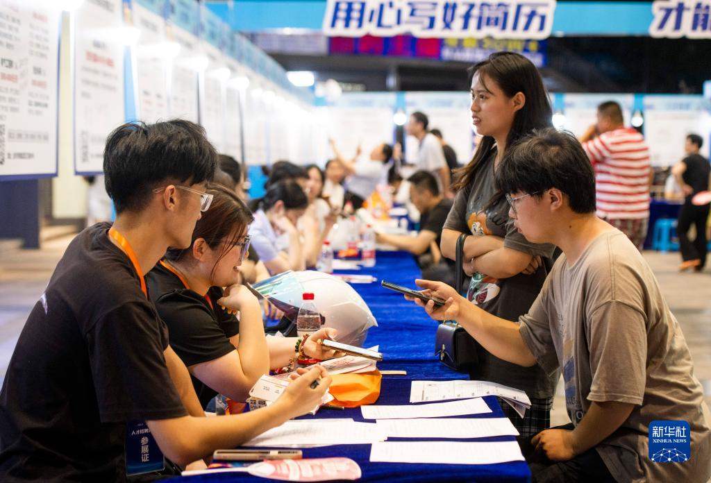 當日,浙江省金華市舉辦“人才夜市”高校畢業生專場,多家生物醫藥、機械制造、新能源企業為求職者提供工作崗位,吸引了許多高校畢業生前往咨詢應聘。