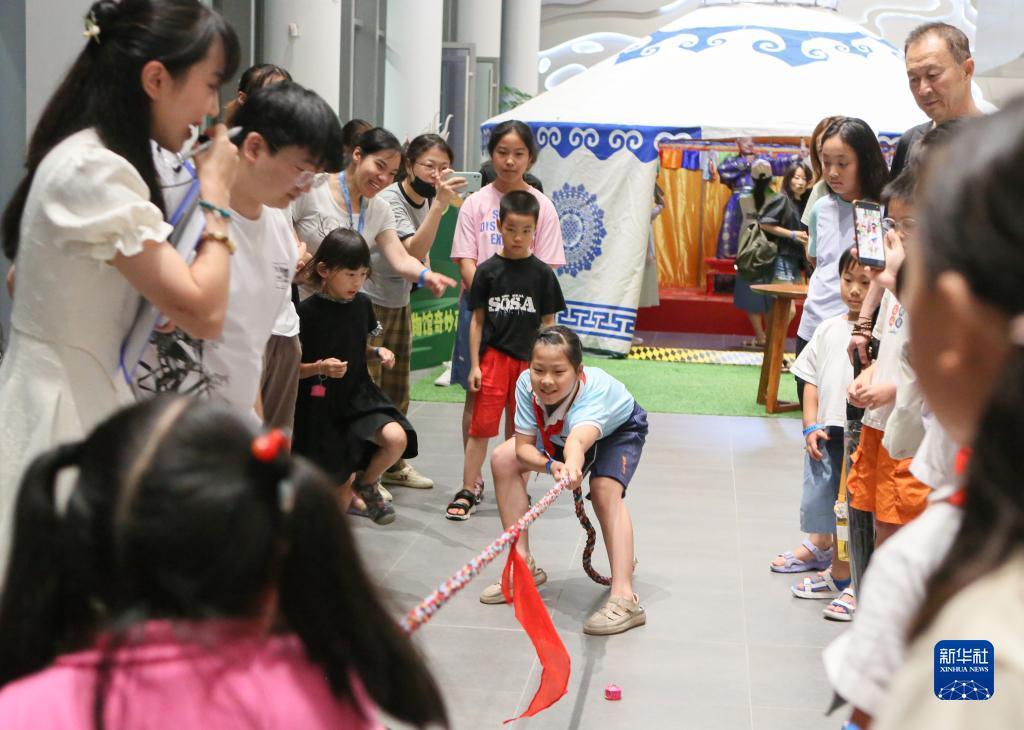 當日,為配合“漠北鋒鳴——鄂爾多斯青銅器文物精品展”,助力城市夜經濟發展,上海市閔行區博物館開展夜間“那達慕”大會。參觀者可以體驗射箭、拔河,品嘗特色美食,充分感受民俗風情的魅力。