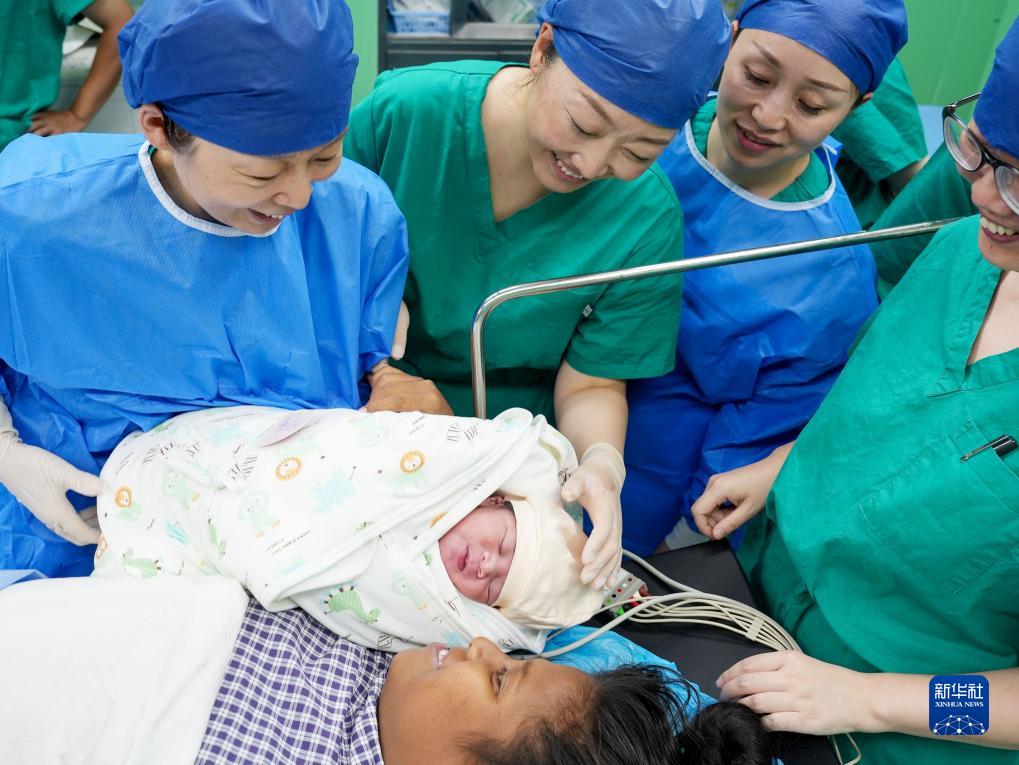 中國海軍“和平方舟”號醫院船在基里巴斯為29歲的塔拉瓦居民德阿瑞接生了一名“和平寶寶”(7月16日攝)。
