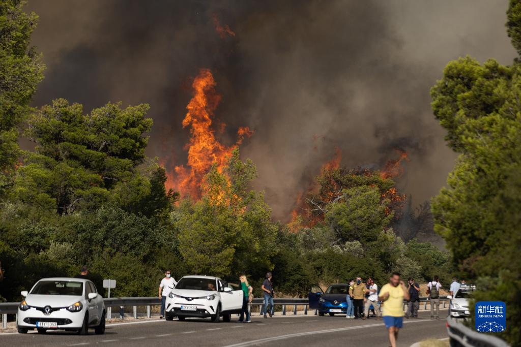 由于連日遭遇極端高溫,希臘首都雅典郊外17日發生兩起野火,導致數以千計人員疏散。