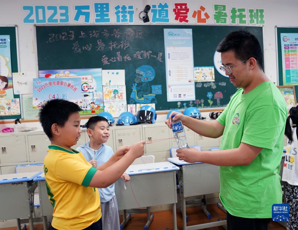 今年暑假,上海市普陀區小學生愛心暑托班首次設立“新業態新就業群體子女專班”,招收外賣騎手、快遞員等新就業群體的子女,且不限上海學籍并減免一半費用,以緩解這些家庭的暑期“看護難”的問題。孩子們在愛心暑托班里,參加了豐富有趣的課程和活動,還交到了新朋友。
