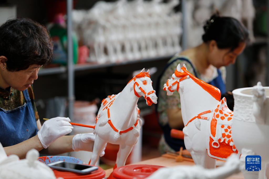 唐三彩被譽為“東方藝術瑰寶”,迄今已有1300余年歷史。河南省洛陽市孟津區朝陽鎮南石山村以生產唐三彩而聞名,近年來,當地通過整合資源、規范管理等措施,傳承創新唐三彩燒制技藝,實現唐三彩企業信息共享、資源共享。在行業協會的引領下,將傳統制作工藝與現代元素相融合,逐步推動產業高質量發展,成為人才集中、產品豐富的唐三彩生產基地和唐三彩藝術品集散地。目前,該村擁有唐三彩生產企業60多家,年產值3.5億元,先后榮獲全國“一村一品”示范村鎮、“全國鄉村特色產業億元村”等稱號。