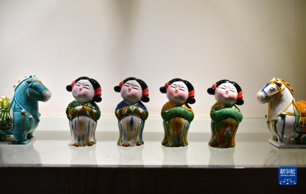 這是7月19日在南石山村一家唐三彩生產企業的展廳里拍攝的唐三彩作品。