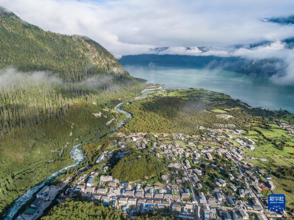 這是7月20日拍攝的西藏林芝市工布江達縣錯高鄉結巴村景色(無人機照片)。