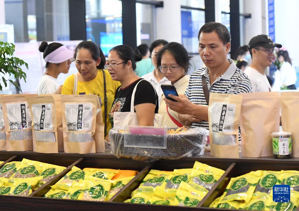 7月22日,在廣西南寧國際會展中心,人們在中醫藥產業展覽現場參觀。