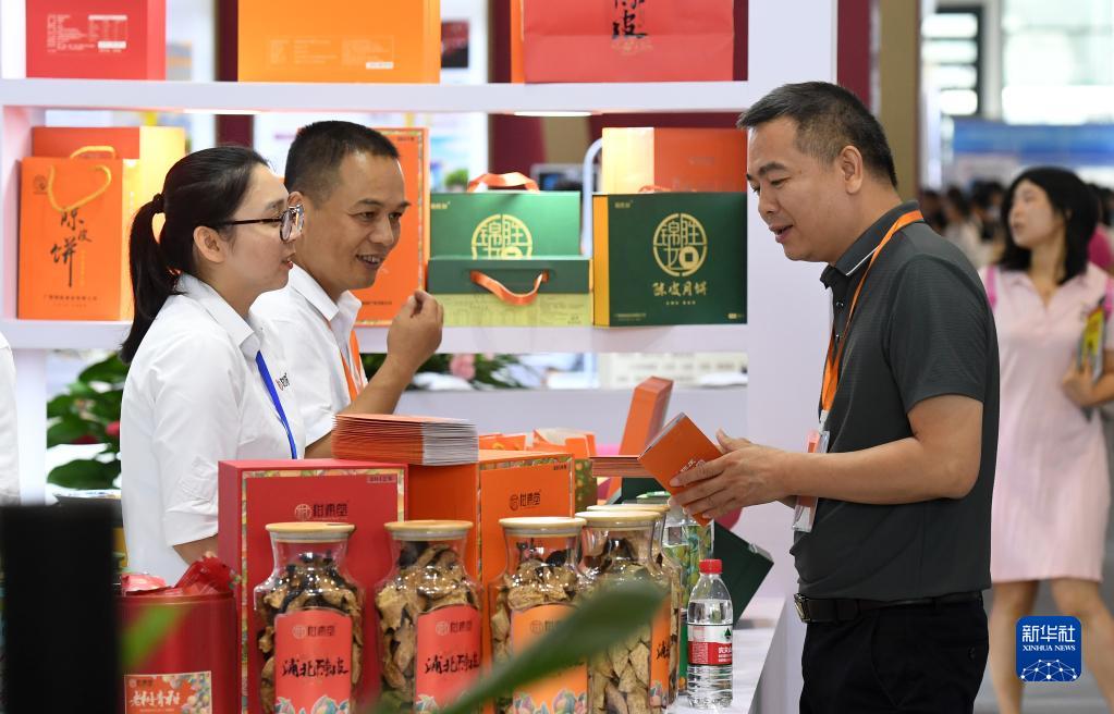 7月22日,在廣西南寧國際會展中心,人們在中醫藥產業展覽現場交流。
