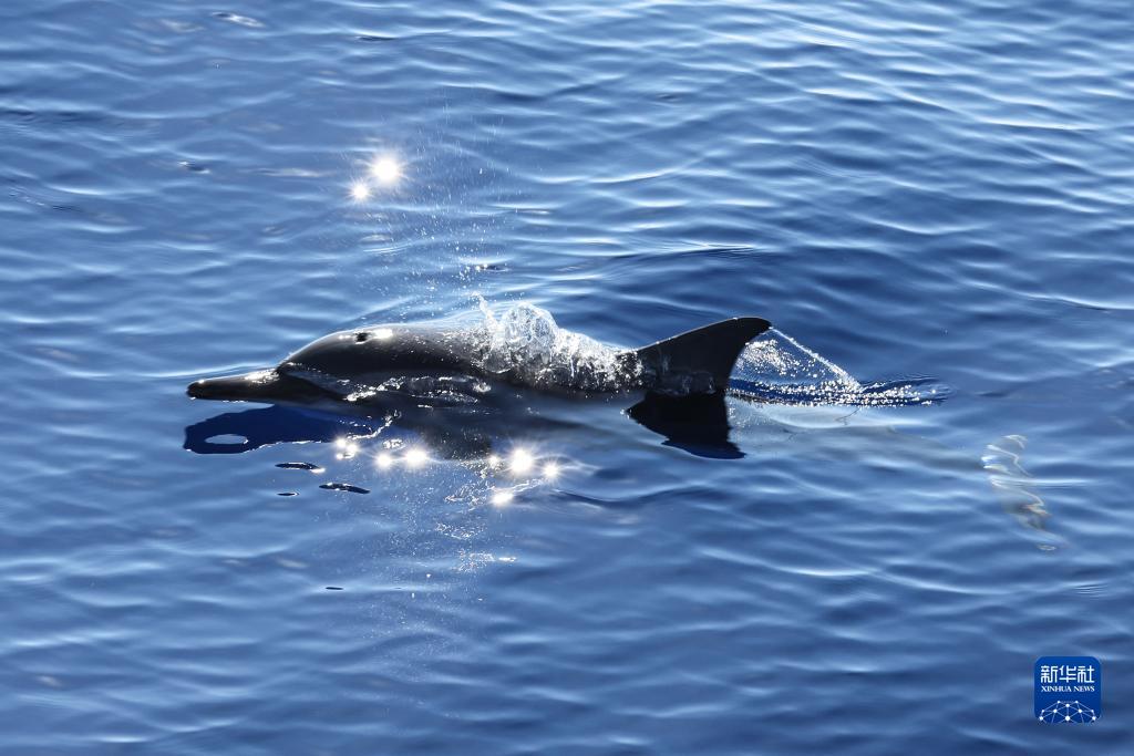 這是7月5日在南海某海域拍攝的長吻飛旋海豚。