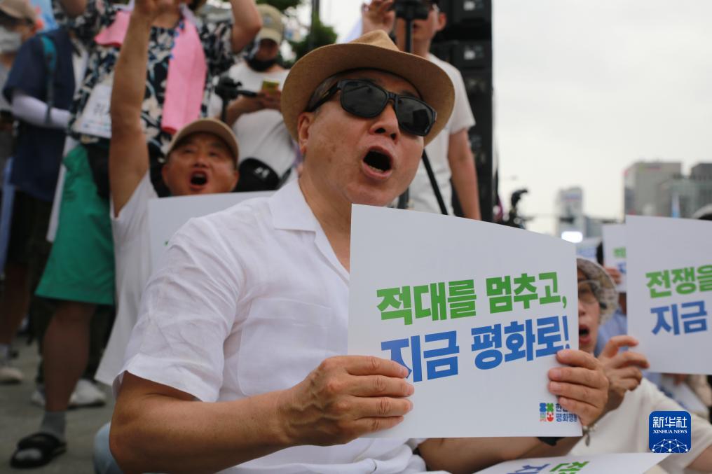 韓國民間團體“停戰70年朝鮮半島和平行動”7月22日在首爾市中心舉行反戰游行活動,反對韓美日加強軍事合作,呼吁停止制造半島軍事緊張,打造和平共存、合作共贏的亞洲。