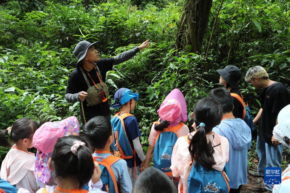 7月22日,來自京滬兩地的學生和家長在云南西雙版納的雨林中聽科普導游介紹雨林生態常識。