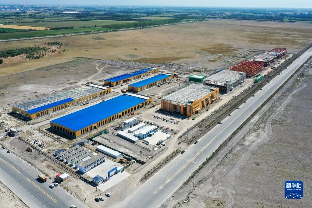 這是7月22日在新疆塔城重點開發開放試驗區先行發展區拍攝的正在建設的閩商智能電子產業園(無人機照片)。