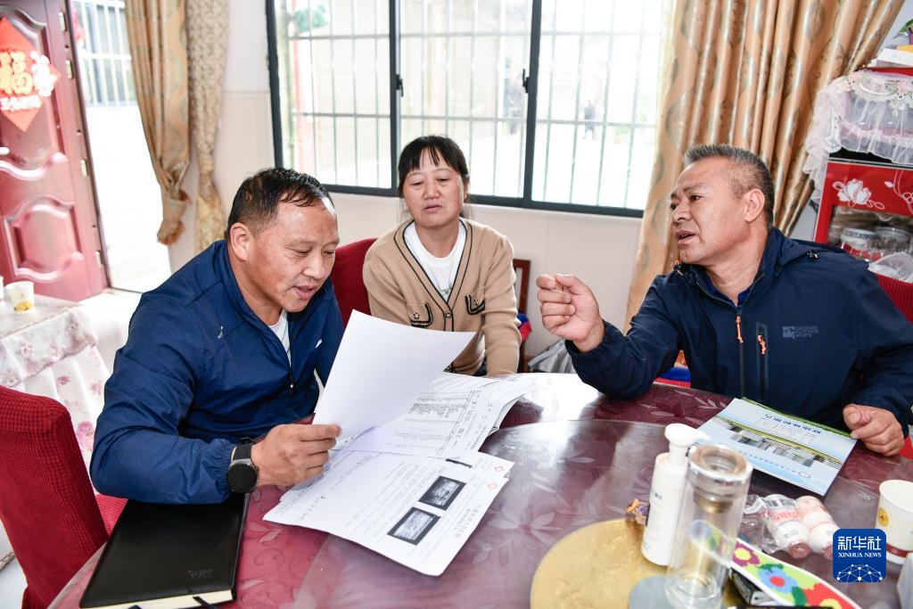 朱大清(左)在給患者查看醫院檢驗報告單(7月19日攝)。