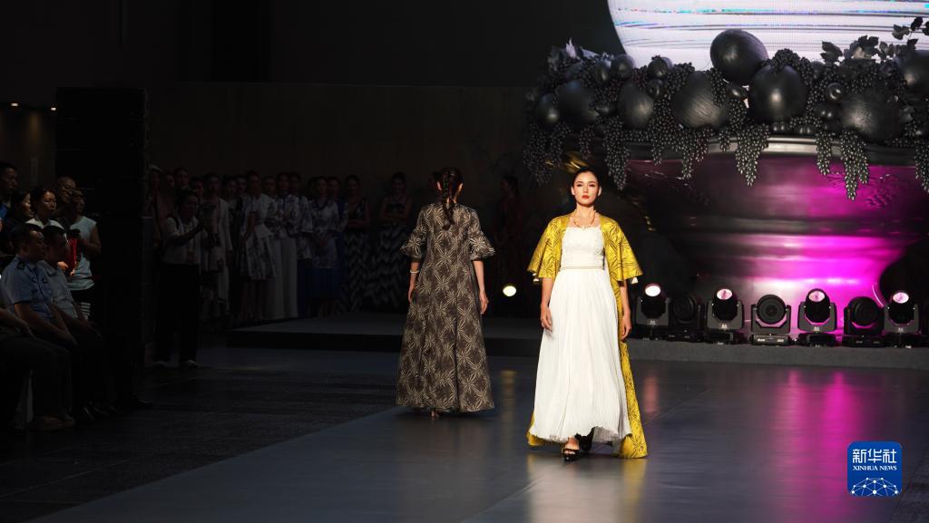 在時尚秀現場,模特展示服飾作品(7月22日攝)。
