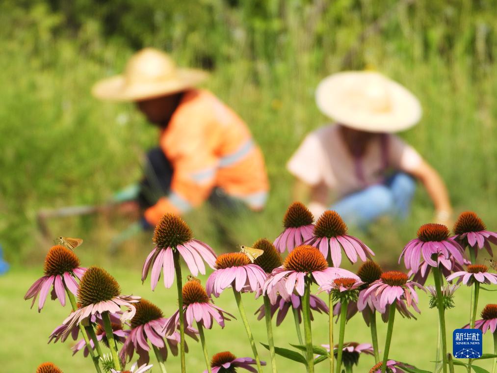 7月23日,花農在四川省達州市高新區斌郎街道長田社區花卉種植園內勞作。