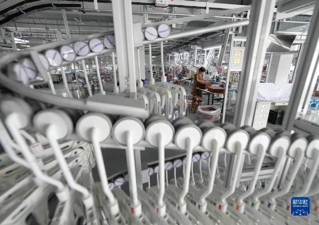 7月23日,工人在肅寧縣一家針紡服裝企業生產車間工作。