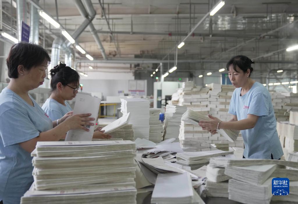7月23日,工人在河北省肅寧縣的一家圖書印刷企業的裝訂車間工作。