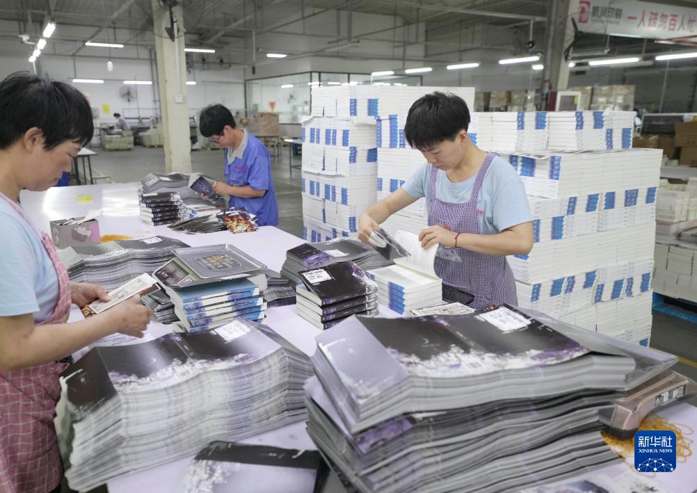 7月23日,工人在河北省肅寧縣的一家圖書印刷企業的裝訂車間工作。