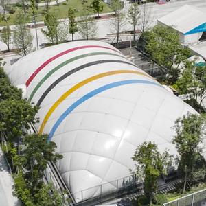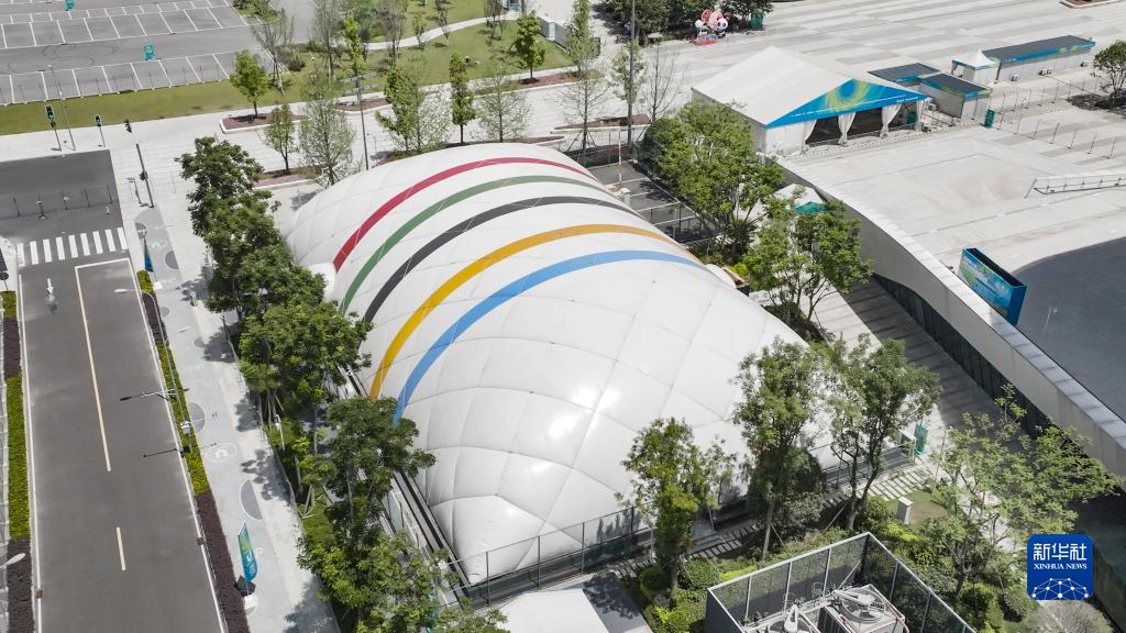 這是7月22日在成都高新體育中心多功能館外拍攝的臨時訓練氣膜館(無人機照片)。該臨時訓練氣膜館采用輕型裝配式氣膜結構,利用氣壓來支撐,無需任何梁、柱,可得到更大的完全凈空的建筑空間,具有節約能源、減少水資源消耗、降低二氧化碳排放量、延長使用壽命、降低建筑物運行成本、促進可持續發展等優點。