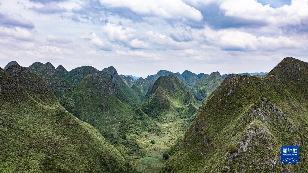 夏日,位于貴州省六盤水市六枝特區新窯鎮的播雨峰林綠意盎然,千姿百態的峰林景觀構成一幅美麗的生態畫卷。